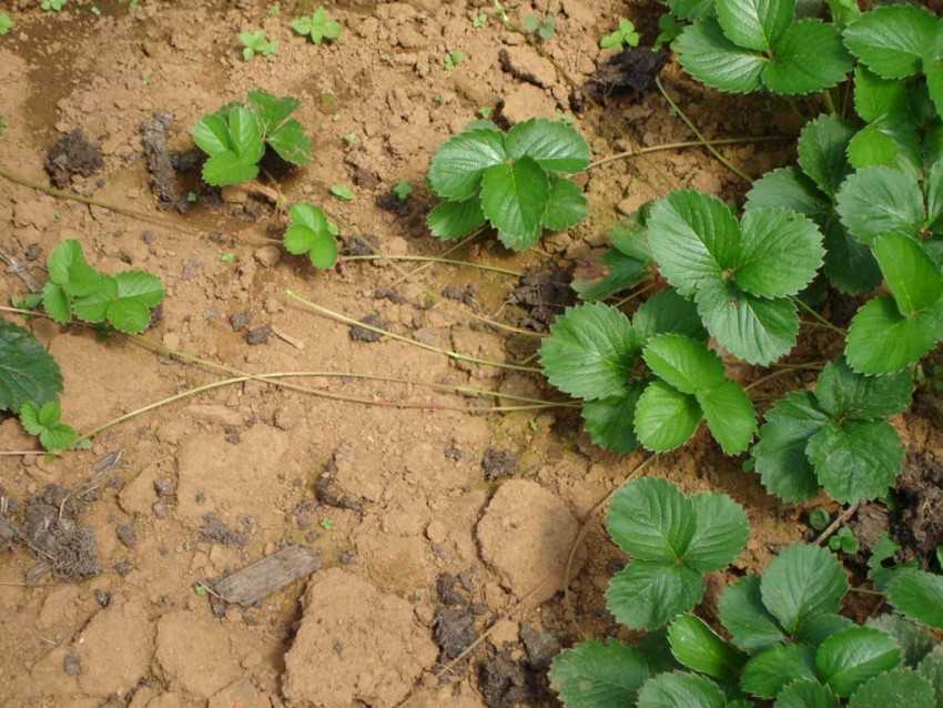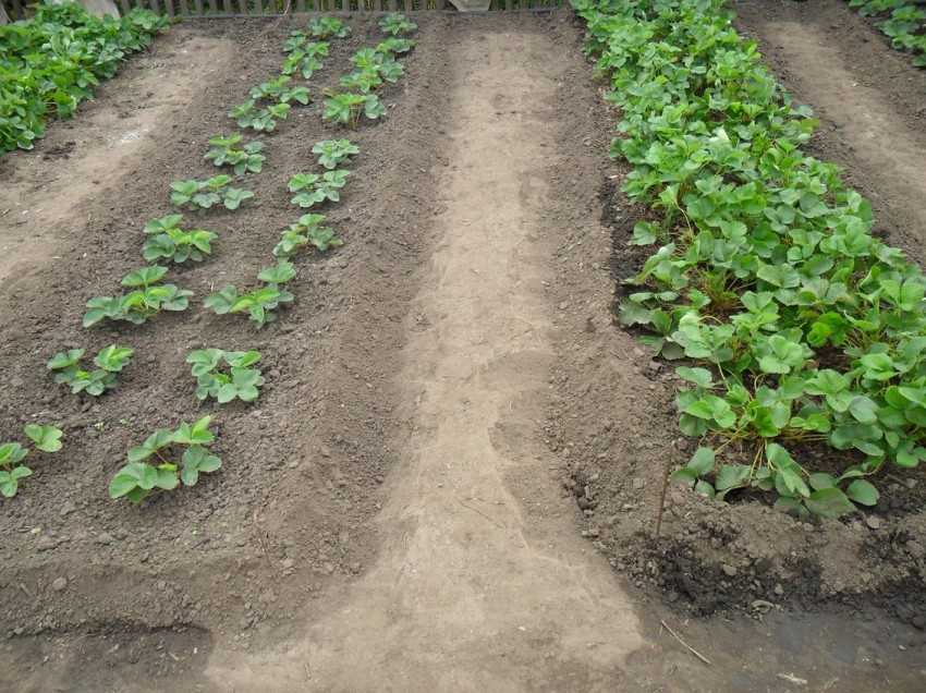 Максимальную урожайность и полноценный уход за клубникой можно будет проводить, если расстояние между рядами будет не меньше 30 – 35 см. Увеличение количества плодоносящих кустов клубники можно проводить несколькими разными способами: размножение семенами или же посадку усиками. В последнем случае каждый из выращиваемых кустов в процессе вегетации активно формирует новые усики, которые потом врастаю в грунт. Для таких целей больше всего подходят усы с плотной крепкой розеткой, а само высаживание требует дополнительного времени и усилий, чтобы сохранять порядок на грядках.