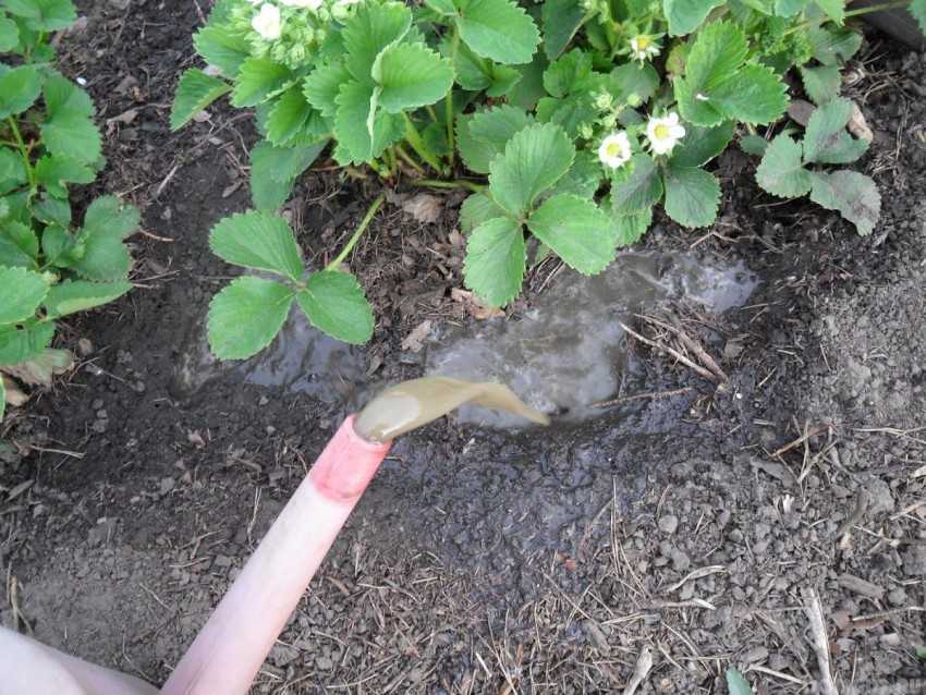 При внесении органики нужно избегать попадания раствора на листовую массу.