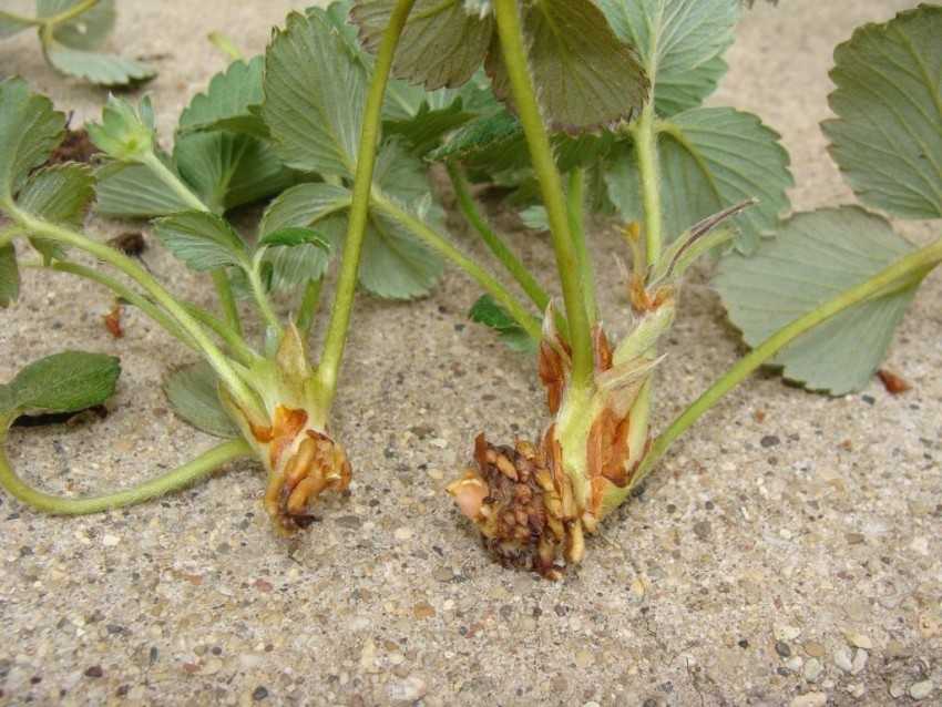 Несмотря на устойчивость к мучнистой росе и серой гнили, клубника показывает низкую стойкость к такому заболеванию, как вертициллез. Это грибковое заболевание, вызванное одноимённым микроорганизмом-паразитом. Поражается, в первую очередь, корневая система растения. Питаясь растительным соком, микроорганизмы выделяют ядовитые продукты своего метаболизма, которые со временем достигают цветоносов. Первая симптоматика появляется, когда растение уже большей частью заражено, и спасти его невозможно.