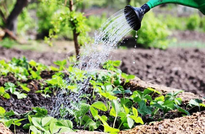 Своевременный полив кустов клубники существенно увеличит урожайность.