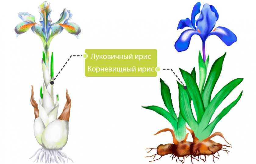 Ирисы отличаются многообразием видов, среди которых выведено немало гибридов разных размеров, форм и окрасок. Их в ботаническом плане можно разделить на два вида — корневищные и луковичные.