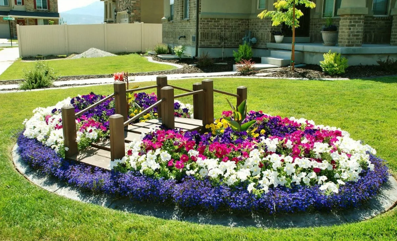 Глупо размещать цветник там, где его никто не увидит. Цветы существуют, чтобы радовать глаз. В этом отношении идеально выставить клумбу на лужайке во дворе частного дома, а в случае, если это дача, то можно прямо возле дома, но не в его тени.
