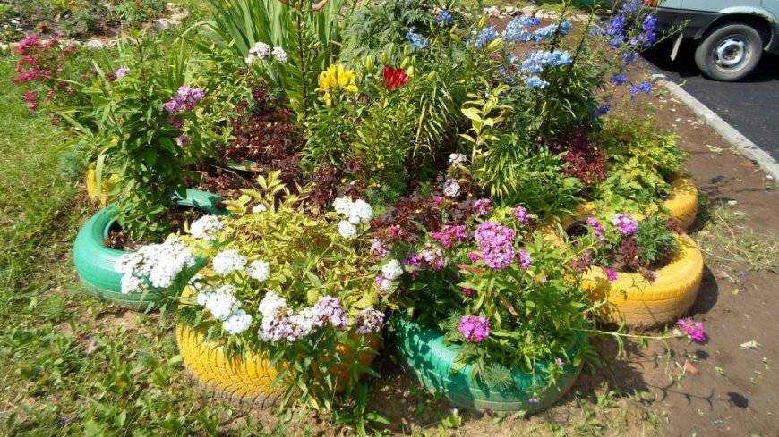 Цветники и клумбы из подручных материалов: фото и общая классификация