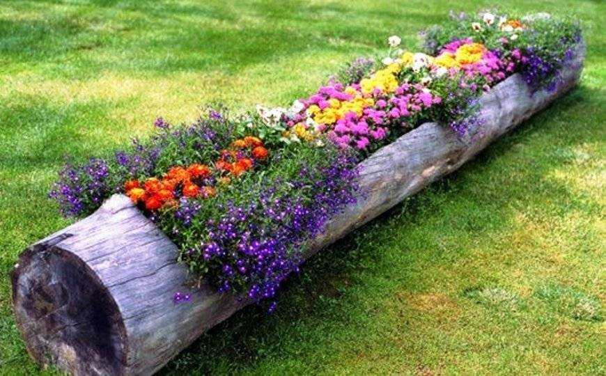 Клумба в бревне