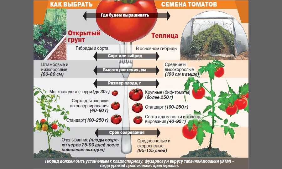 Для выращивания на грядках подойдут специально выведенные, самые урожайные сорта и гибриды. Они должны быть устойчивы к перепадам погоды: внезапным заморозкам, засухе, жаре. Обычно в открытый грунт высаживают ранние и среднеранние помидоры, более поздние сорта не успевают вызревать до заморозков. Среди сортов и гибридов можно найти самые разные варианты, они отличаются цветом и формой плодов, плотностью мякоти, размером. нюансами вкуса.
