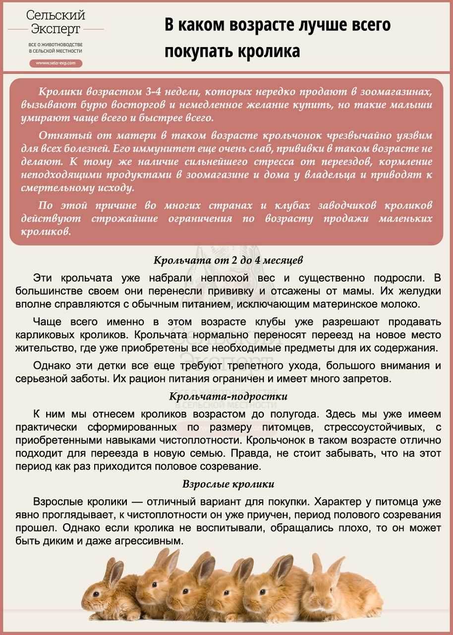 Лучше всего к новому хозяину привыкает кролик в возрасте до 8 недель. Не следует брать животное более старшего возраста: скорее всего, крольчонок успел привыкнуть к другому человеку, поэтому такая перемена будет для него сильным стрессом.
