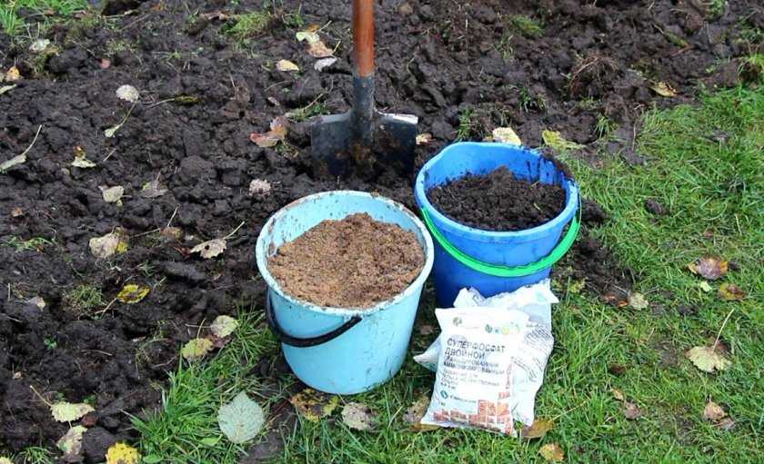 Если грунт глинистый, то во время осенней перекопке вносят по 1 ведру речного песка и 2 л опилок, которые предварительно обработали мочевиной. Когда почва имеет повышенный уровень кислотности, то необходимо её осенью произвестковать.