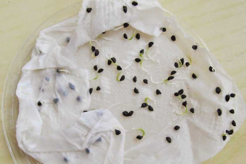 После проведения указанных обработок семена засыпают в тканевый мешочек или заворачивают в ткань и помещают в блюдце с водичкой комнатной температуры на сутки. Воду меняют каждые 6–8 часов. Затем набухшие семена размещают между мокрыми тряпочками и ставят в теплое место на 2-3 дня. Ткань не должна пересыхать, поэтому её по мере усыхания увлажняют. Семена, которые проросли, можно садить.