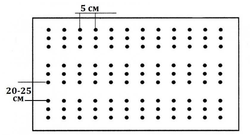 - Семена выкладывают через 5 см друг от друга.