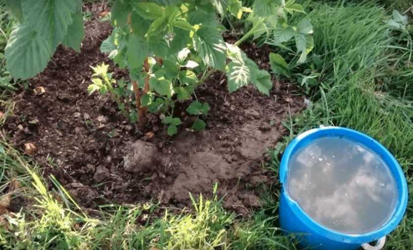- Подкормки растения. Малина хорошо отзывается на комплексные удобрения. Вносятся подкормки во время цветения и после первого сбора урожая в жидком виде под корень;
