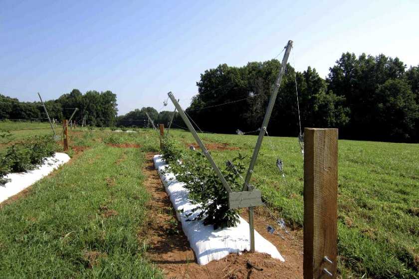- потом натянуть между поперечинами проволоку на расстоянии 50 см друг от друга, на высоте 1 м и 1,5 м от поверхности грунта;