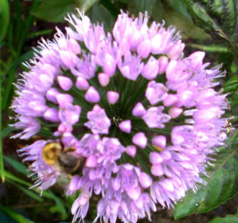 Высота пёрышек до 40 см, на вкус они совсем не острые, приятные, содержат много аскорбинки, железа. В шарике – соцветии постоянно тусуются пчёлы.