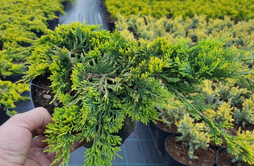 Когда молодые побеги достаточно окрепнут и подрастут, а корневая система достигнет нормального размера, молодые кустики можжевельника Голден Карпет можно высаживать на отдельное место