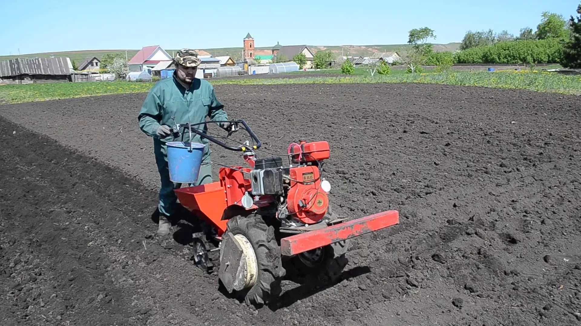 Картофельные клубни следует сажать на расстоянии 0,4-0,6 м. Эта разметка также может выполняться мотоблоком. Чтобы высадить картошку без лишних энергозатрат, можно воспользоваться картофелесажалкой – специальной насадкой на мотоблок.