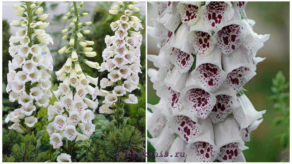 Орхидейная наперстянка. Свое название растение получило из-за формы белых цветков с отогнутыми лепестками в красную крапинку, которые напоминают орхидею. Растение было представлено питомниками Hilliers на садовой выставке Челси в 2002 году. Высота растения – до 1,5 м.