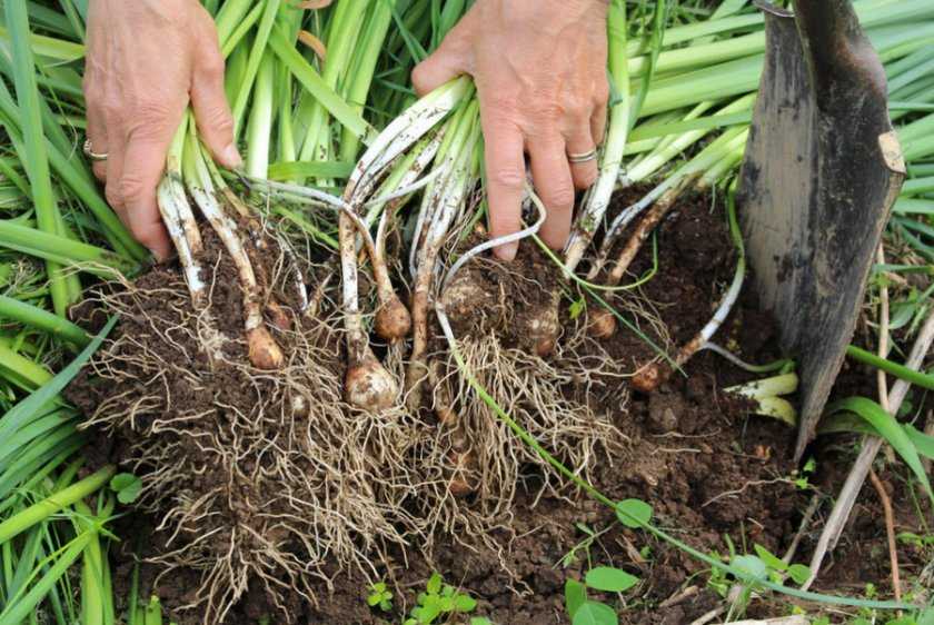 Извлекать из грунта нужно только в конце июня-начале июля, так как в августе начинается процесс укоренения.