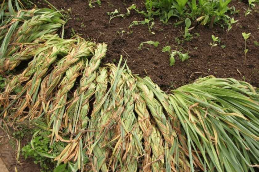 Использовать для этих целей лучше всего опилки твердых деревьев, измельченную солому, скошенную траву и ореховую скорлупу. Благодаря мульчированию участок не только имеет более привлекательный внешний вид, но и предотвращает активное разрастание сорняка