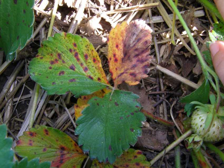 Возбудитель болезни может сохраняться в почве до восьми лет. При возникновении благоприятных условий начинает размножаться. При обнаружении симптомов белой пятнистости прекращают подкормки клубники органическими удобрениями и применяют народные средства или химические препараты.