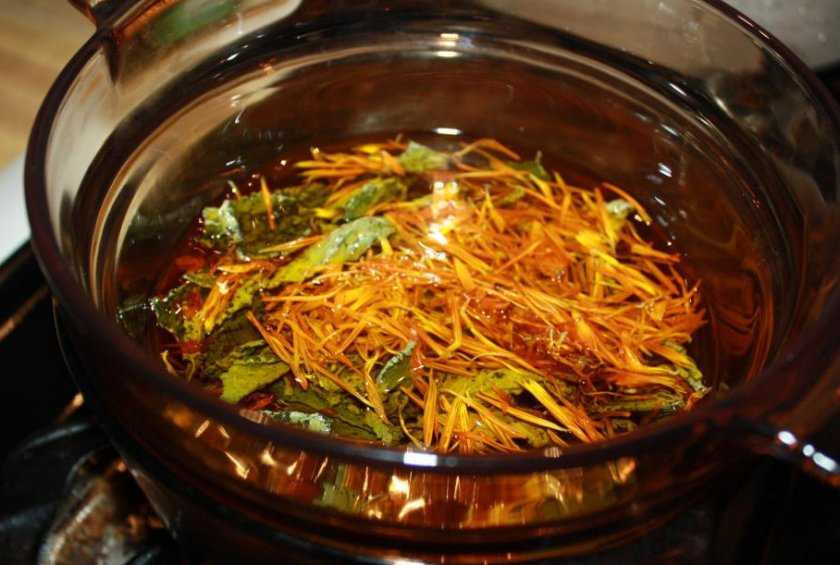 Настой календулы, или ноготков — ещё одно не менее эффективное средство. Для его получения необходимо 200 г высушенных соцветий залить 5 л воды. Оставить закрытую ёмкость со средством в тёплом помещении на 24 часа.