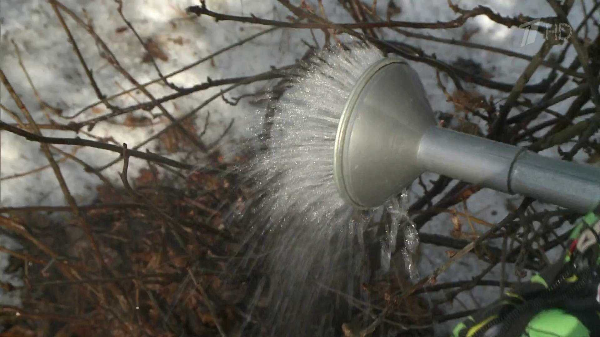 - Полейте куст кипятком со всех сторон. Вода должна равномерно обливать кустарник по кругу и по всей высоте.