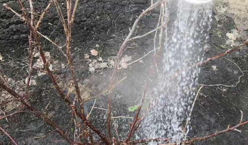 Кипяток заливается в лейку, затем им поливают все побеги. Нельзя долго лить горячую воду в землю. Если она будет согрета раньше положенного срока, то проснутся корни, начнется преждевременное цветение. В результате куст погибнет от заморозков.