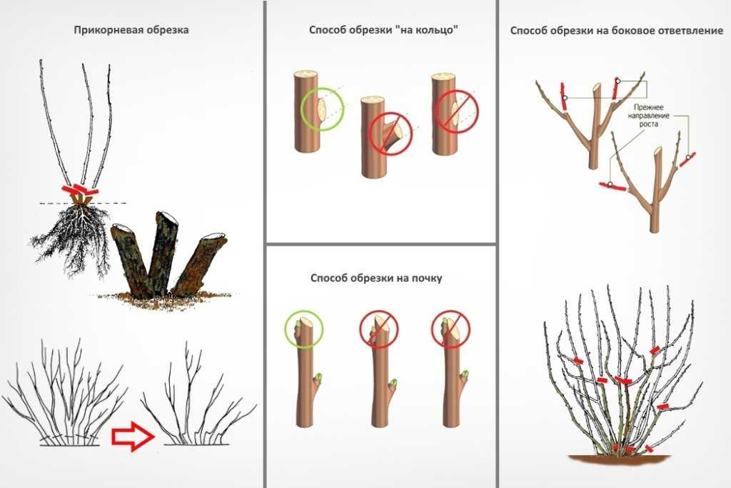 - Обрезают побеги, рост которых направлен внутрь куста и те, которые растут параллельно земле;