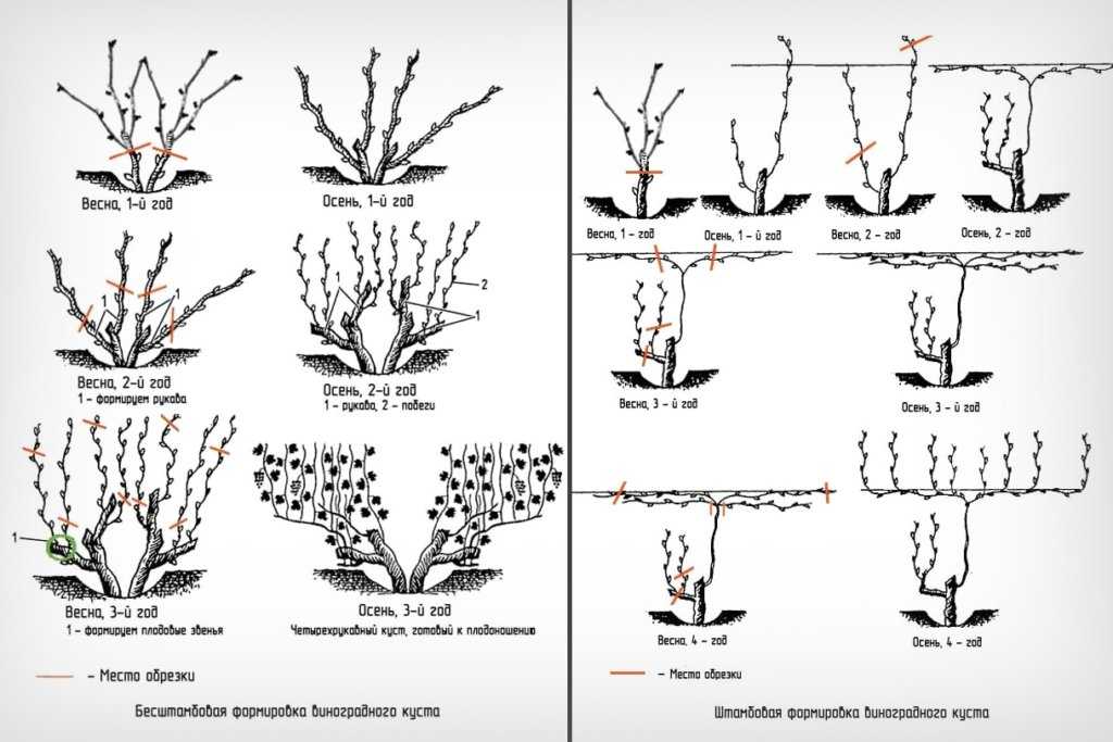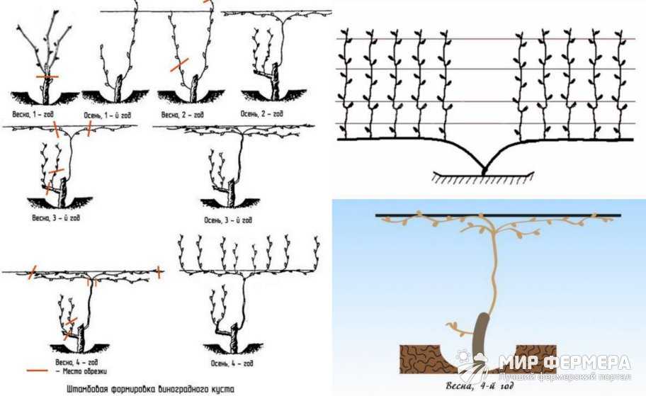 Формирование штамба производится на первом году высадки винограда. Выполнение штамбовой обрезки по годам жизни: