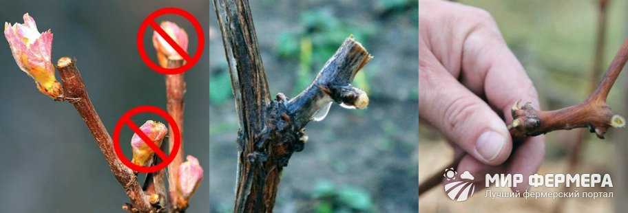 - Если лоза пересушена или не имеет должного количества почек, она удаляется полностью под корень.