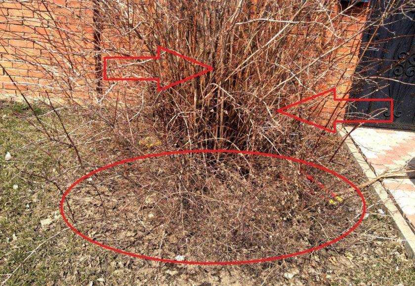 После такой процедуры от ранее пышного куста остаются одни пеньки. Но не нужно опасаться, что растение погибнет: постепенно на месте старых веток образуются молодые цветущие побеги.