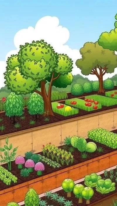Планирование и зонирование пермакультурной усадьбы: Разделите участок на зоны в зависимости от частоты использования и потребностей. Создайте зоны для выращивания овощей, фруктов, ягод, животных, отдыха и хранения. Используйте принципы лесосада для создания многоярусных систем.