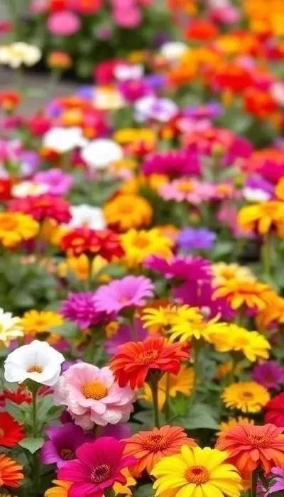 - Цинния: Обильно цветущие цветы с яркими соцветиями.