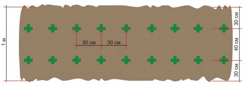 - В борозду уложить семена с промежутками 25–30 см друг от друга. Между рядами оставить по полметра.