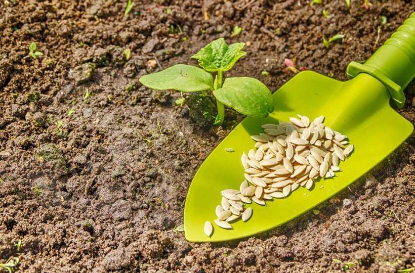 Перед посадкой подготовьте грунт в теплице: перекопайте почву и внесите органические удобрения. Отлично подойдёт перепревший навоз из расчёта 20–30 л на 1 м² участка. Выкопайте лунки на расстоянии 0,3 м друг от друга. Между рядами выдерживайте дистанцию 0,7 м. Семена следует сеять на глубину 2–4 см.