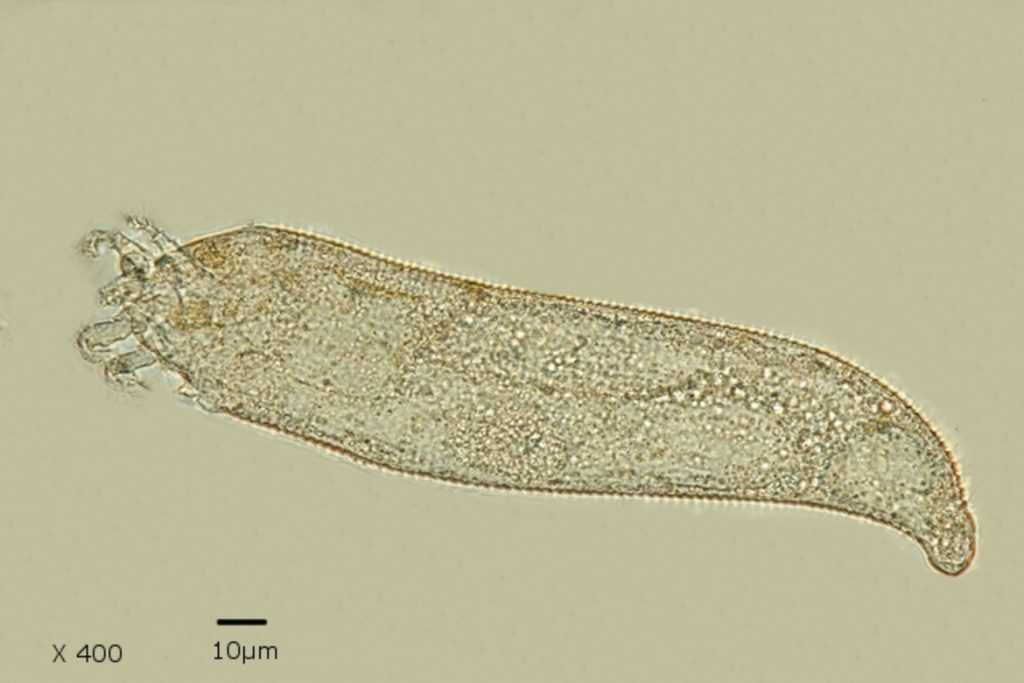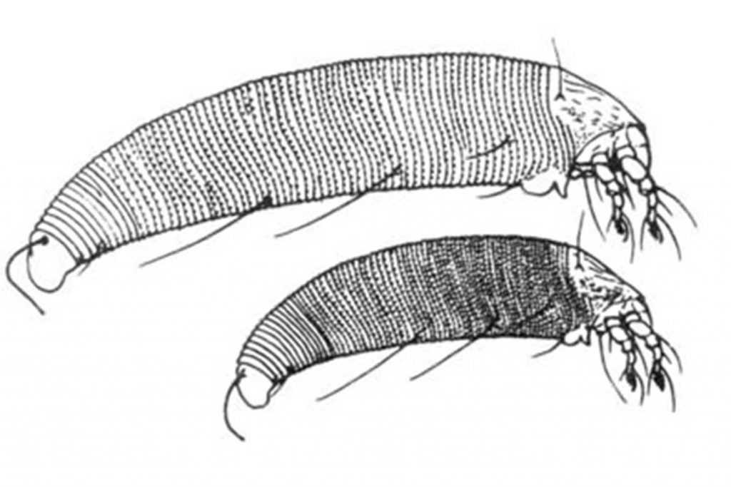 Это микроскопический паразит. Длина его тела составляет 0,2 мм. Из-за этого при беглом осмотре обнаружить вредителей проблематично. Понять, что произошло заражение растений, можно благодаря изменениям внешнего вида растений. Клещ относится к семейству галловых, а потому главной особенностью, позволяющей распознать паразита (при многократном увеличении), является наличие двух пар конечностей.