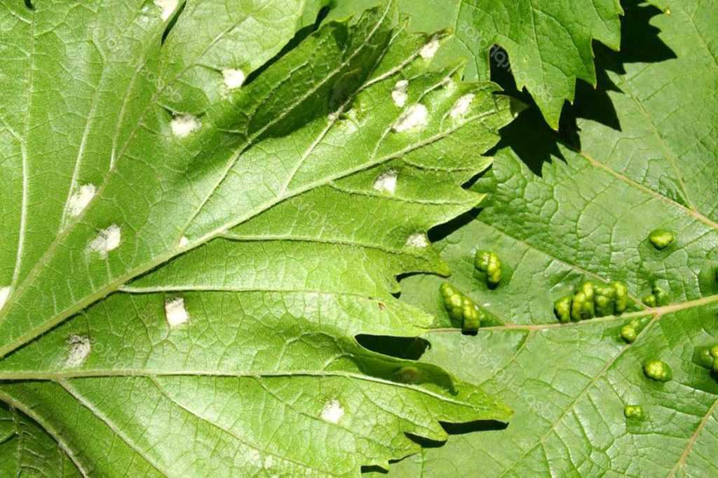 Источник пищи для вредителей виноградников – тканевая жидкость или попросту – сок. Паразиты паразитируют на виноградной лозе, делают прокол на листьях, после чего на поверхности появляются слегка выпуклые уплощенные образования неправильной формы. Они напоминают бородавки, называются галлами. Растительная ткань по цвету на этих участках отличается от основного оттенка листа – более темная или светлая.