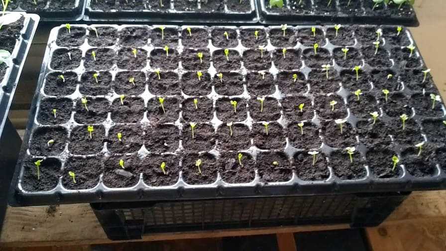 В каждую ячейку кладут 2—3 семечка, затем удалить слабые ростки, оставив один самый крепкий.