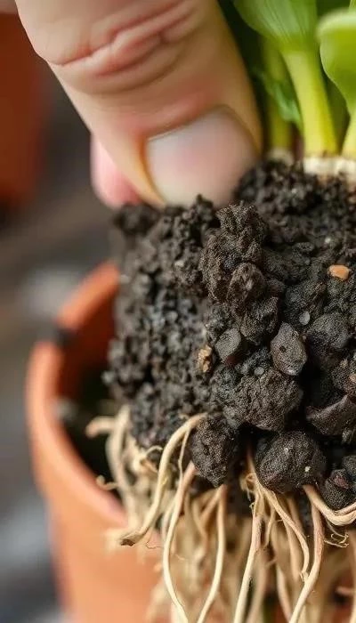 Перед извлечением обильно полейте растение. Аккуратно постучите по стенкам горшка, чтобы отделить земляной ком. Переверните горшок, поддерживая растение у основания стебля. Если растение не выходит, осторожно разрежьте горшок. Старайтесь не повредить корневую систему.