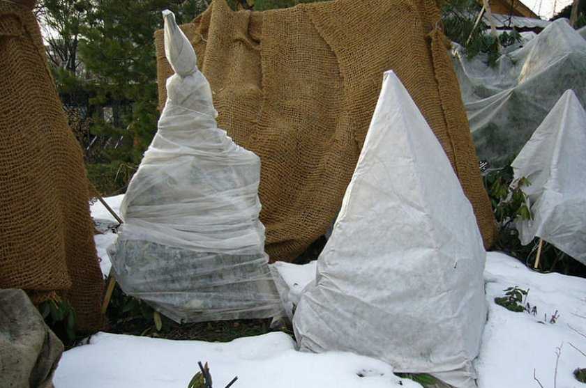 В конце осени рекомендуется перевязать ветви веревкой, чтобы зимой стряхивать с них снег, иначе веточки обломятся под его тяжестью.