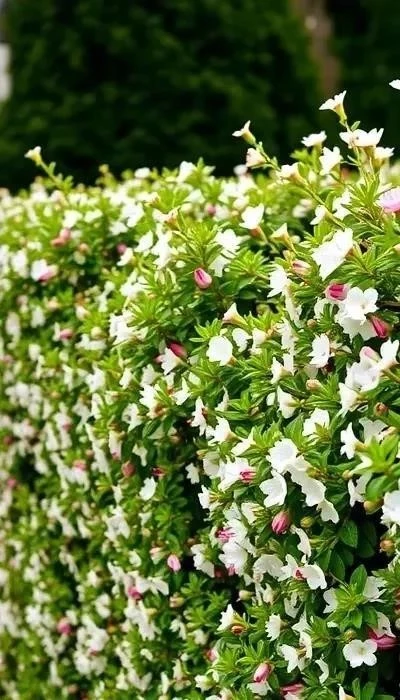 Как отмечается в информации из интернета, цветущие кусты, такие как лапчатка, отличаются быстрым ростом и продолжительным цветением (с июня по октябрь). Они могут достигать высоты 130-140 см и ширины 150 см, что делает их отличным выбором для создания живой изгороди. Бирючина, листопадный кустарник, может вырастать до 5 м в высоту и также подходит для формирования плотного забора.