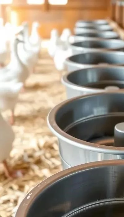 В зимний период поение гусей требует особого внимания, поскольку вода быстро замерзает, что может привести к обезвоживанию птиц. Самое главное – обеспечить постоянный доступ к незамерзшей воде. Рекомендуется использовать подогреваемые поилки или регулярно менять воду, чтобы она не успевала замерзнуть. Гусям зимой, чтобы защитить жироподобную смазку, которой смазаны перья и кожные покровы, от разложения, не надо давать тёплую воду с температурой выше 24 градусов. Важно следить за чистотой поилок, чтобы предотвратить распространение болезней. Не забывайте, что достаточное потребление воды необходимо для поддержания здоровья и продуктивности гусей в холодное время года. Корм дают дважды в день до наступления яйцекладки и трижды с ее началом, и в этот период особенно важен доступ к воде. Также, можно подливать горячую воду в поилки, чтобы предотвратить замерзание.