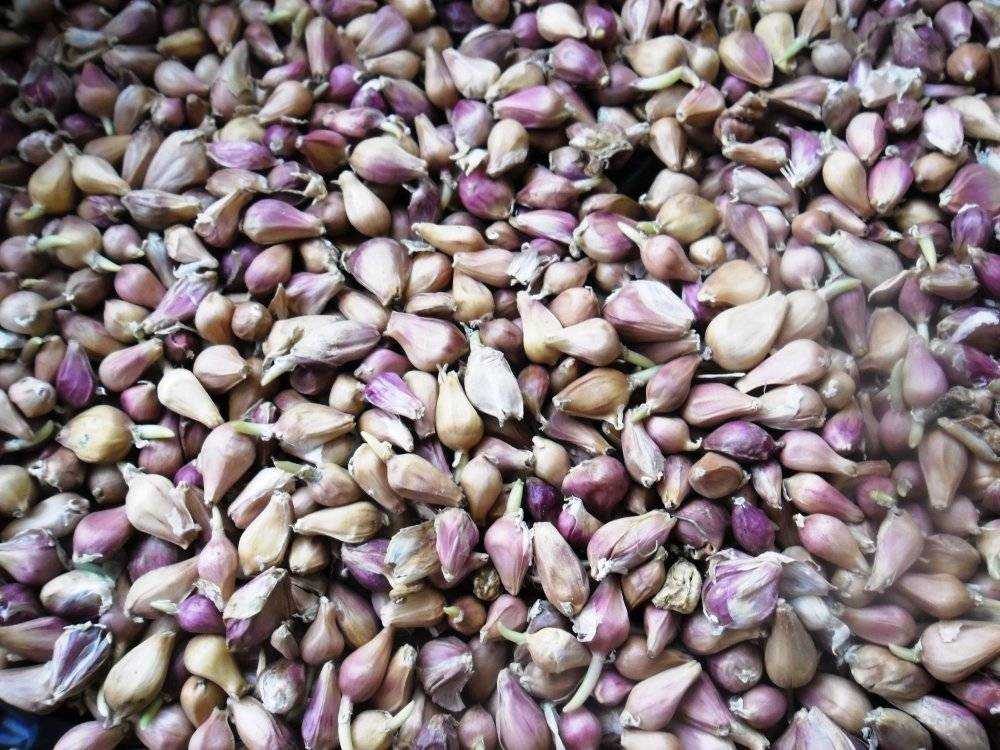 Бульбочки – воздушные луковицы, которые мы называем семенами растения. Размножение чеснока таким способом дает возможность получить полноценную луковицу на второй-третий год. Применяя такой метод размножения, можно обновить яровой чеснок, получить более качественный посадочный материал. В первый год из бульбочки вырастает однозубка. Чтобы получить урожай из мелкоты, ее нужно хранить в сухом темном месте при комнатной температуре. За полтора месяца перед высадкой бульбочки просматривают, удаляют высохшие экземпляры и отправляют на нижнюю полку холодильника или в полотняном мешочке на снег. В день посадки замачивают в растворе марганцовки. Бульбочки сажают в подготовленные грядки с проделанными углублениями. Глубина заделки бульбочек 3-4 см с расстоянием 10-15 см между ямками. После окончания работы почву выравнивают и мульчируют.