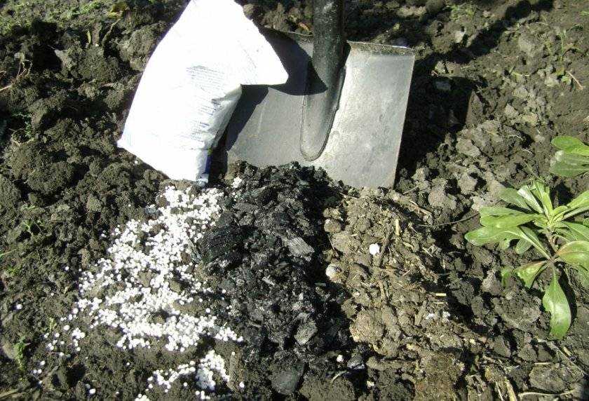 Весной подготовленный участок достаточно хорошо разрыхлить. Если осенью не были внесены питательные вещества, то данный процесс проводят весной. Для этого требуется внести на один квадратный метр 15 кг компоста, 50 г суперфосфата и немного древесной золы. Если грунт — песчаный, то следует провести внесение удобрений с содержанием магния.