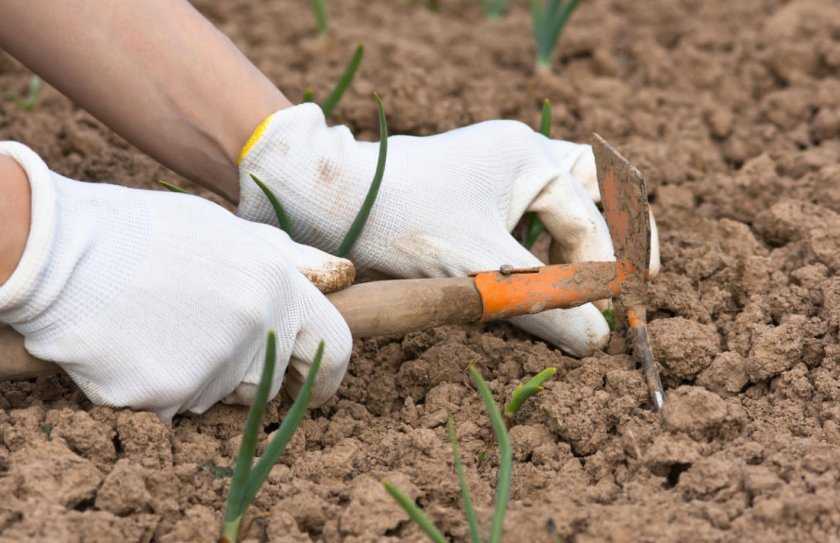 Рыхление является обязательным шагом, сопровождающим поливы. После просыхания мокрой земли образуется корка, которая закрывает доступ воздуха к корням и формирующимся луковицам. Чтобы возобновить аэрацию почвы, её нужно рыхлить каждый раз после увлажнения или дождя. Обычно рыхление сопровождается прополкой междурядий.