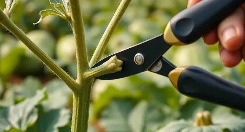 Я всегда использую продезинфицированный секатор, чтобы избежать занесения инфекции в растение. В первый раз, когда я прищипывал дыню, немного боялся повредить растение, но с опытом пришел к тому, что это довольно простая процедура.