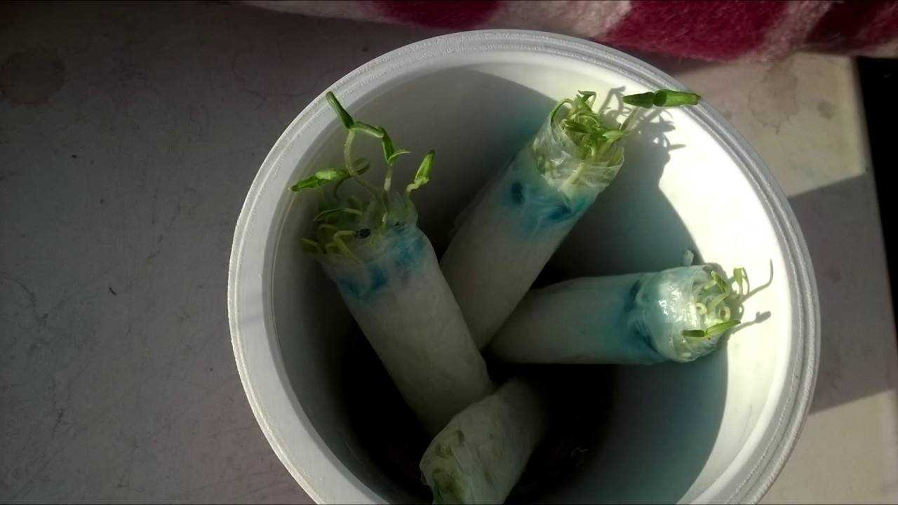 На 4 — 5 день появятся ростки. Пленку снимают после их появления над бумагой и устанавливают емкости на хорошо освещенное место.
