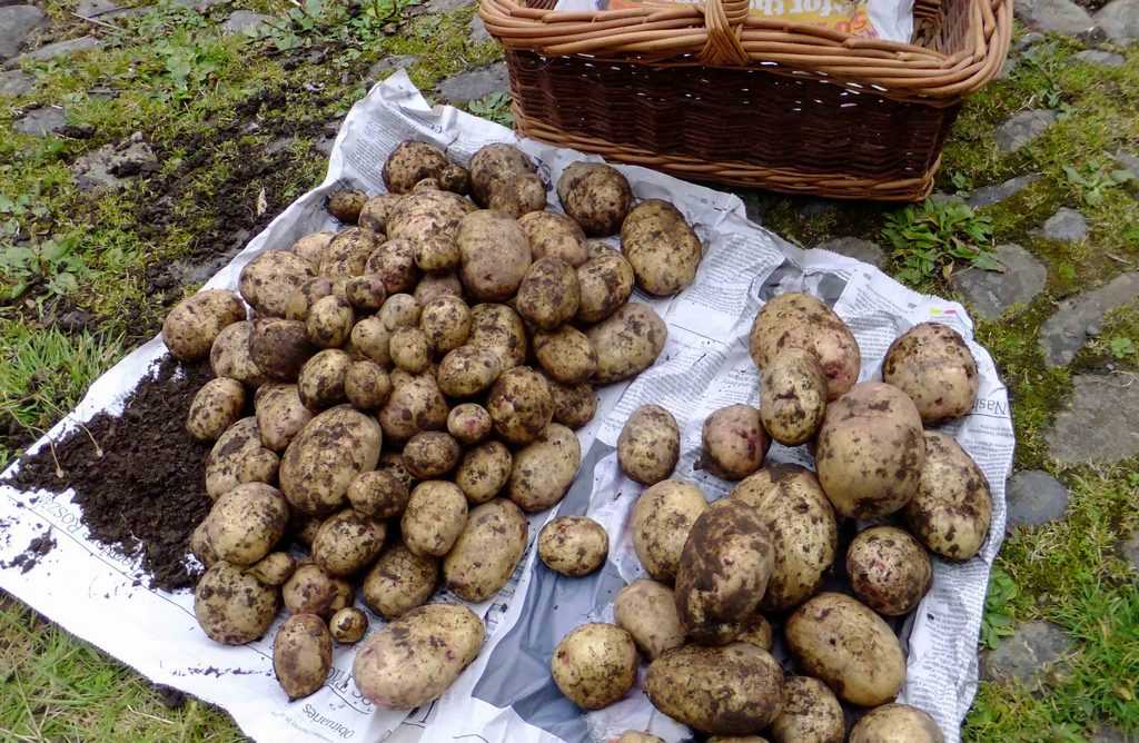 Урожай картошки собирают, когда ботва подсохнет. В Московской области сбор начинается с середины июня, поскольку здесь часто сажают ранние сорта. Затягивать эту процедуру не стоит, если зрелые плоды долго лежат в земле, они отдают часть полезных свойств и становятся более рыхлыми