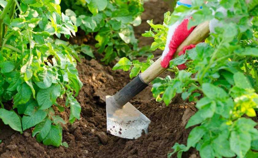 Окучивание. Эта процедура позволяет защитить всходы от майских заморозков. Её производят, когда всходы вырастут в высоту на 10–15 см. Второе окучивание осуществляют для ростков высотой 15–18 см. Окучивают растения влажной почвой.