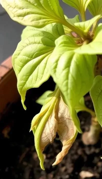 Недостаток света: листья бледнеют, вытягиваются к источнику света, растение слабо растет. Избыток света: листья желтеют, покрываются ожогами, становятся сухими и ломкими. Важно найти оптимальное место!