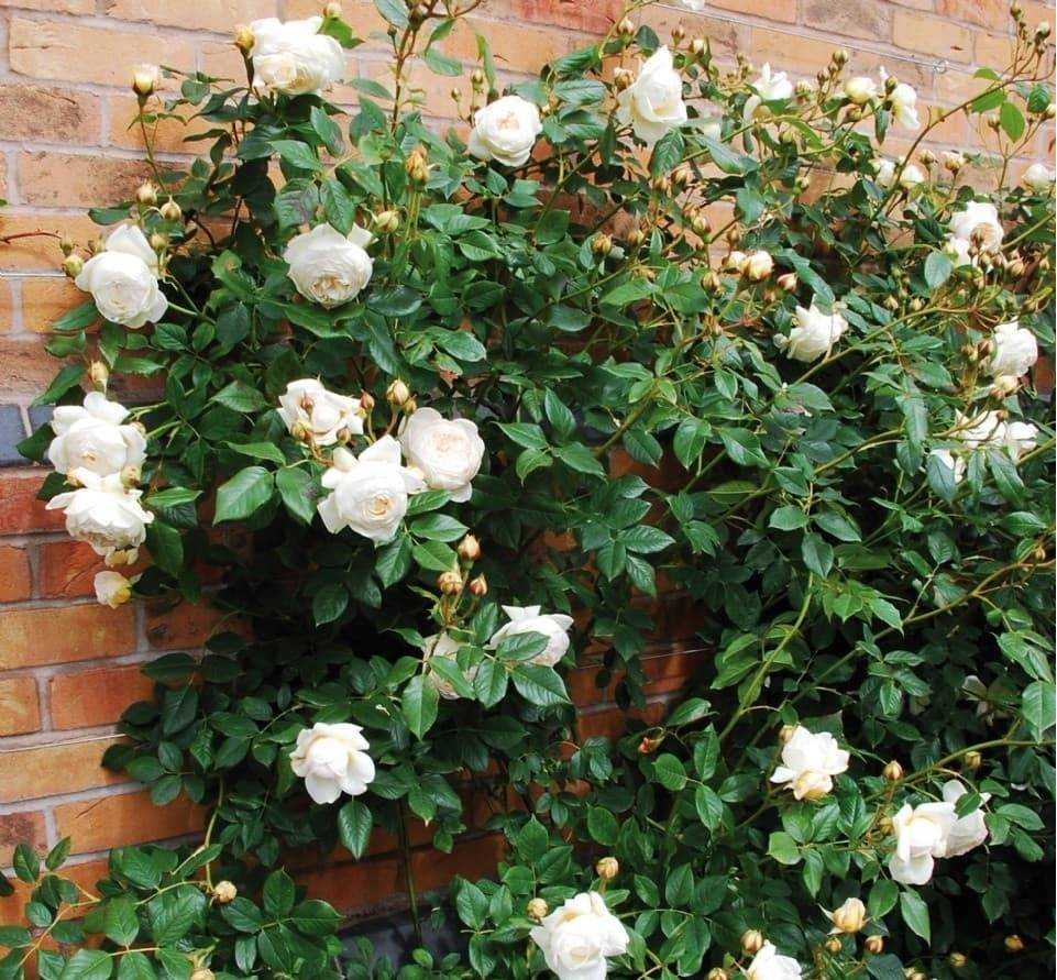 В коллекции Дэвида Остина белоснежная Клэр – самая главная жемчужина: белые цветы, собранные в богатые соцветия, расположены на прямостоячих побегах