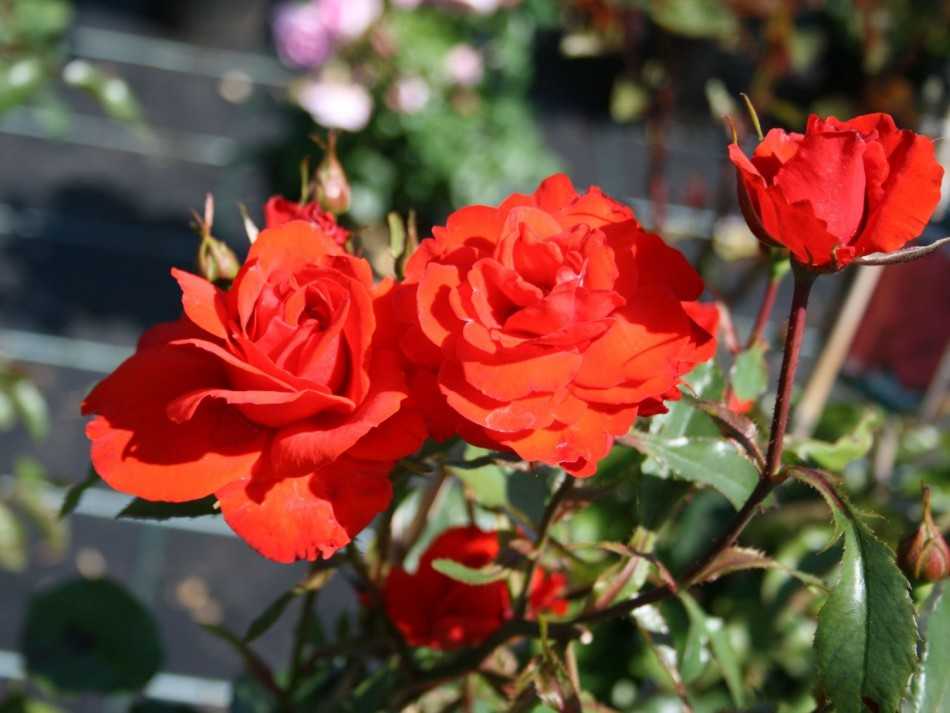 Florentine (Флорентина). Очень привлекательное аккуратное декоративное растение, которое используется как для формирования букетов, так и при оформлении ландшафтного дизайна. Его прямостоячие стебли могут достигать высоты до 2 м. При формировании куста можно делать необходимые подрезки, тогда он становится очень пышным. Цветки у Флорентины красные, собранные в пучки. Диаметр каждого удлиненного бутона может достигать 10 см. Очень хорошо цветы переносят зиму. Относятся они к неприхотливым, неукрывным сортам роз (для Подмосковья это очень хорошее свойство).